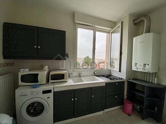 Este apartamento tem uma cozinha e todo o equipamento pela sua vida quotidiana : frigorífico, forno, bin.