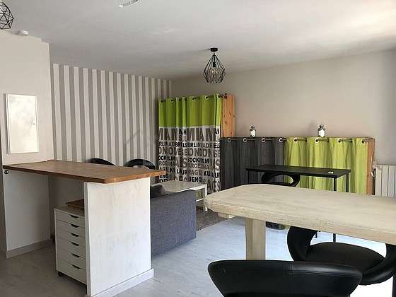 Este apartamento é composto de um salão janelas. Este salão mobiliado et equipado para uma agradável estância : sofá, mesa de jantar, mesinha, secretária, 5 cadeira(s)1 sofá-cama.