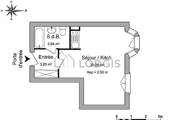 Este apartamento é equipado de uma casa de banho. Esta sala de água dispõe do necessário pelo seu bem estar na sua vida quotidiana : armário, banheira, sink. Os WC são integrados na casa de banho.