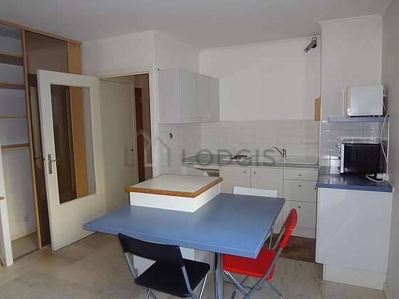 Este apartamento tem uma cozinha e todo o equipamento pela sua vida quotidiana : fogaõ, frigorífico, forno, microondas, armário, 1 cadeira(s).