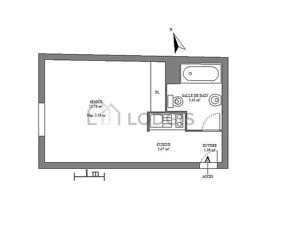 Este apartamento é equipado de uma casa de banho. Esta sala de água dispõe do necessário pelo seu bem estar na sua vida quotidiana : banheira, sink. Os WC são integrados na casa de banho.