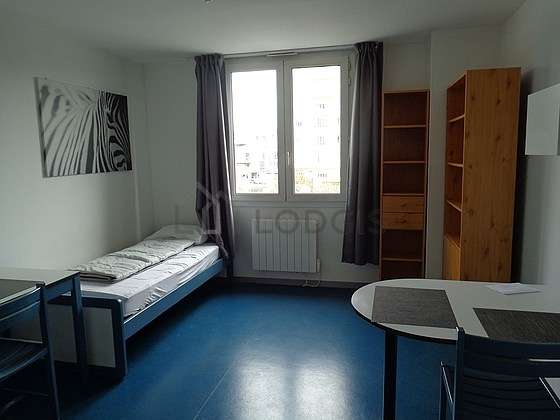 SalaõEste apartamento é composto de um salão janelas. Este salão mobiliado et equipado para uma agradável estância : mesa de jantar, secretária, prateleira, armário, 1 cadeira(s)1 cama.