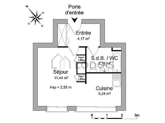 Este apartamento é equipado de uma casa de banho. Esta sala de água dispõe do necessário pelo seu bem estar na sua vida quotidiana : banheira, sink. Os WC são integrados na casa de banho.