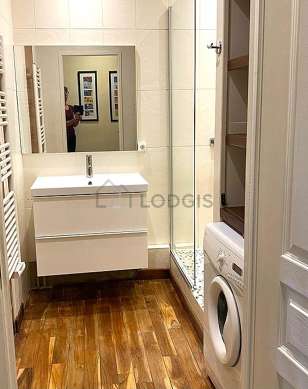 Este apartamento é equipado de uma casa de banho. Esta sala de água dispõe do necessário pelo seu bem estar na sua vida quotidiana : armário, ducheiro separado, sink, radiator secador de toalhas. Os WC são separados da casa de banho e situados em uma peça independente.