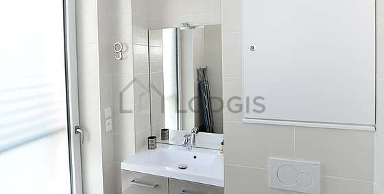 Este apartamento é equipado de uma casa de banho. Esta sala de água dispõe do necessário pelo seu bem estar na sua vida quotidiana : toalhas de banho, ducheiro separado, secador, airer, sink, towel rack, radiator secador de toalhas. Os WC são separados da casa de banho e situados em uma peça independente.
