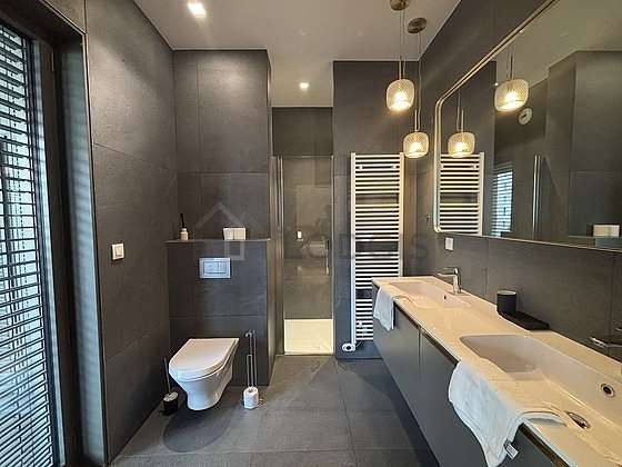 Este apartamento é equipado de uma casa de banho. Esta sala de água dispõe do necessário pelo seu bem estar na sua vida quotidiana : toalhas de banho, ducheiro separado. Os WC são separados da casa de banho e situados em uma peça independente.