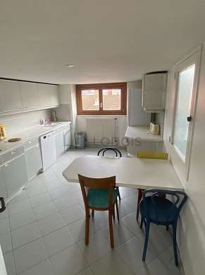 Este apartamento tem uma cozinha e todo o equipamento pela sua vida quotidiana : fogaõ, frigorífico, congelador, forno, microondas, exaustur, chaleira, máquina de café, mesa de jantar, prateleira, armário, 1 cadeira(s).