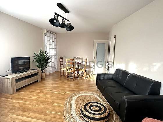 SalaõEste apartamento é composto de um salão com parqué no piso é janelas vitros duplos. Este salão mobiliado et equipado para uma agradável estância : televisaõ, sofá, 1 poltrona(s), mesa de jantar, 1 cadeira(s).