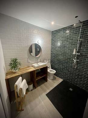 Este dúplex é equipado de uma casa de banho. Esta sala de água dispõe do necessário pelo seu bem estar na sua vida quotidiana : banheira, sink. Os WC são separados da casa de banho e situados em uma peça independente.