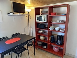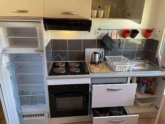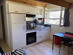 Este apartamento tem uma magnífico cozinha perto do salaõ com azuleijo no piso e todo o equipamento pela sua vida quotidiana : fogaõ, frigorífico, congelador, forno, microondas, exaustur, torradeira, máquina de café, mesa de jantar, loiça, 1 cadeira(s).