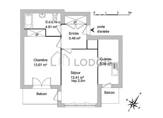 Este apartamento é equipado de uma casa de banho. Esta sala de água dispõe do necessário pelo seu bem estar na sua vida quotidiana. Os WC são separados da casa de banho e situados em uma peça independente.