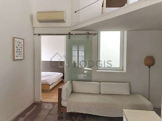 Graças a sua altura de teto, um mezanino foi possível de ser instalado em este apartamento , oferecendo-lhe uma verdadeira peça suplementar.