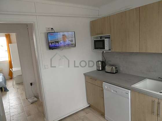 Este apartamento tem uma magnífico cozinha com azuleijo no piso e todo o equipamento pela sua vida quotidiana : fogaõ, frigorífico, congelador, micro-ondas combinado, torradeira, chaleira, armário, loiça.