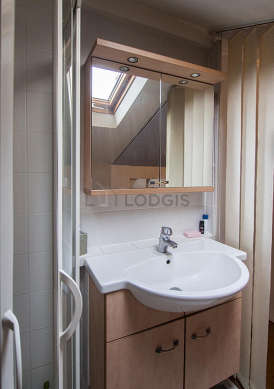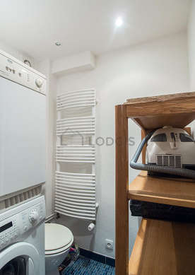 Este apartamento é equipado de uma casa de banho agradável é clara with janelas. Esta sala de água dispõe do necessário pelo seu bem estar na sua vida quotidiana : toalhas de banho, armário, ducheiro separado, secador, radiator secador de toalhas. Os WC são separados da casa de banho e situados em uma peça independente.