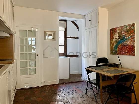 Este apartamento é composto de um charmoso salão com piso de ceramica no piso é janelas é vista sobre rua. Este salão calmo mobiliado et equipado para uma agradável estância : colchas, mesa de jantar, roupeiro, prateleira, armário, 4 cadeira(s), mesinha de cabeceira1 cama.