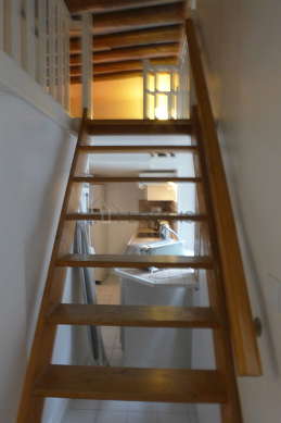 Graças a sua altura de teto, um bonita mezanino foi possível de ser instalado em este apartamento , oferecendo-lhe uma verdadeira peça suplementar equipada de lençois, colchas, armário, mesinha de cabeceira.