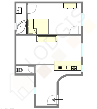 Este apartamento é equipado de uma casa de banho agradável with janelas. Esta sala de água dispõe do necessário pelo seu bem estar na sua vida quotidiana : toalhas de banho, armário, banheira, radiator secador de toalhas. Os WC são separados da casa de banho e situados em uma peça independente.