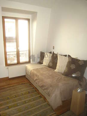 Com parqué no piso é janelas vitros duplos é vista sobre pátio, este quarto atraente oferece o equipamento necessário para descansar durante sua estância : lençois, colchas, secretária, 1 cadeira(s), mesinha de cabeceira1 cama.