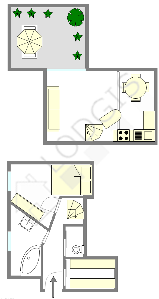 Este apartamento é composto de um bonito salão com parqué no piso é janelas vitros duplos é vista sobre pátio. Este salão very quiet mobiliado et equipado para uma agradável estância : televisaõ, lençois, colchas, 1 poltrona(s), mesa de jantar, mesinha, prateleira, pedras aparentes1 cama, 1 sofá-cama.