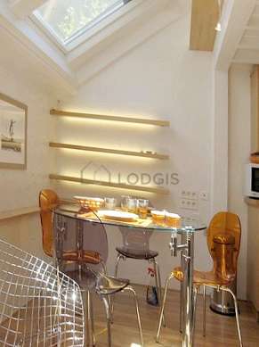 Com pavimento no piso é vista sobre pátio, o terraço exposto a sul de este apartamento vai lhe encantá-lo. Este espaço exterior very quiet é muito luminoso é equipado de 1 poltrona(s), mesa de jantar, 4 cadeira(s) permitindo-lhe aproveitar plenamente de sua estância em Paris, sobretudo os dias de sol.