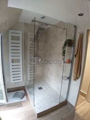Este apartamento é equipado de uma casa de banho magnífico é clara. Esta sala de água dispõe do necessário pelo seu bem estar na sua vida quotidiana : ducheiro separado, secador, sink, radiator secador de toalhas. Os WC são separados da casa de banho e situados em uma peça independente.