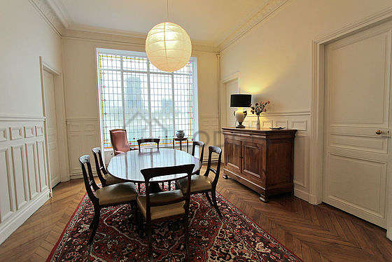 A fim de partilhar suas refeições no ambiente de convivialidade durante sua estância em Paris, este apartamento dispõe de uma magnífico sala de jantar que pode acolher até 6 convivas graças a mesa de jantar, bufet, armário, 6 cadeira(s).