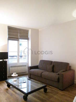 Este apartamento é composto de um agradável salão com parqué no piso é janelas vitros duplos é vista sobre rua. Este salão calmo mobiliado et equipado para uma agradável estância : televisaõ, lençois, colchas, sofá, mesinha, roupeiro, armário1 cama.