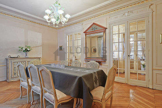 A fim de partilhar suas refeições no ambiente de convivialidade durante sua estância parisiense, este apartamento dispõe de uma magnífico sala de jantar que pode acolher até 8 convivas graças a mesa de jantar, bufet, 8 cadeira(s).