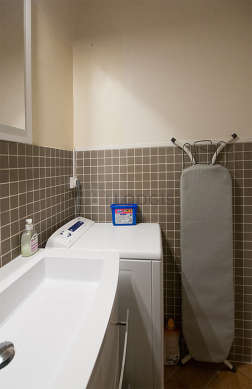 Este apartamento é equipado de uma casa de banho agradável. Esta sala de água dispõe do necessário pelo seu bem estar na sua vida quotidiana : toalhas de banho, armário, ducheiro separado, secador. Os WC são separados da casa de banho e situados em uma peça independente.