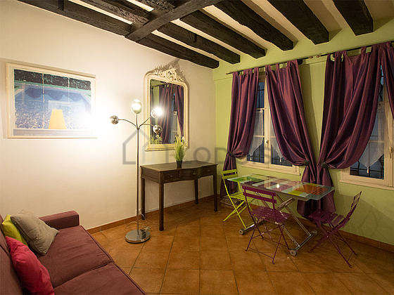 Este apartamento é composto de um salão com azuleijo no piso é janelas é vista sobre pátio. Este salão very quiet mobiliado et equipado para uma agradável estância : televisaõ, lençois, colchas, mesa de jantar, roupeiro, prateleira, armário, viga, 4 cadeira(s), mesinha de cabeceira1 cama de criança, 1 sofá-cama.