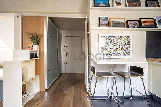 Com parqué no piso o terraço de este apartamento vai lhe encantá-lo. Este espaço exterior calmo é muito luminoso é equipado de 1 poltrona(s), mesinha permitindo-lhe aproveitar plenamente de sua estância em Paris, sobretudo os dias de sol.
