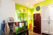 Este apartamento tem uma bonita cozinha perto do salaõ com parqué no piso e todo o equipamento pela sua vida quotidiana : fogaõ, frigorífico, congelador, forno, exaustur, torradeira, chaleira, máquina de café, armário, loiça.