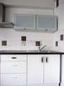 Este apartamento tem uma bonita cozinha perto do salaõ com linoleo no piso e todo o equipamento pela sua vida quotidiana : fogaõ, frigorífico, microondas, freezer, exaustur, armário.