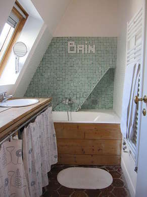 Este apartamento é equipado de uma casa de banho agradável é clara with janelas. Esta sala de água dispõe do necessário pelo seu bem estar na sua vida quotidiana : toalhas de banho, banheira, radiator secador de toalhas. Os WC são separados da casa de banho e situados em uma peça independente.
