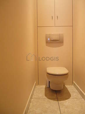 Este apartamento é equipado de uma casa de banho agradável é clara with janelas vitros duplos. Esta sala de água dispõe do necessário pelo seu bem estar na sua vida quotidiana : toalhas de banho, armário, ducheiro separado, radiator secador de toalhas. Os WC são separados da casa de banho e situados em uma peça independente.