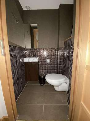 Este apartamento é equipado de uma casa de banho agradável. Esta sala de água dispõe do necessário pelo seu bem estar na sua vida quotidiana : ducheiro separado, radiator secador de toalhas. Os WC são separados da casa de banho e situados em uma peça independente.