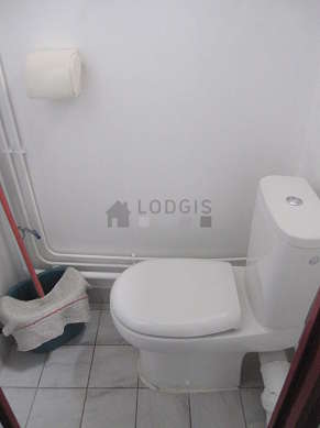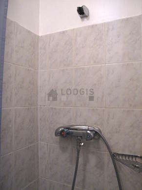 Este apartamento é equipado de uma casa de banho agradável. Esta sala de água dispõe do necessário pelo seu bem estar na sua vida quotidiana : toalhas de banho, armário, ducheiro separado, secador. Os WC são separados da casa de banho e situados em uma peça independente.