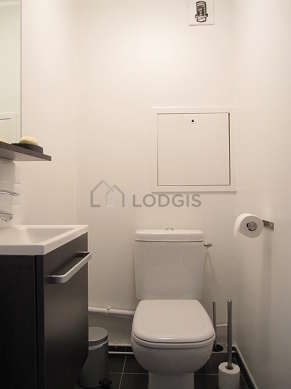 Este apartamento é equipado de uma casa de banho agradável é clara. Esta sala de água dispõe do necessário pelo seu bem estar na sua vida quotidiana : prateleira, ducheiro separado, secador, radiator secador de toalhas. Os WC são separados da casa de banho e situados em uma peça independente.