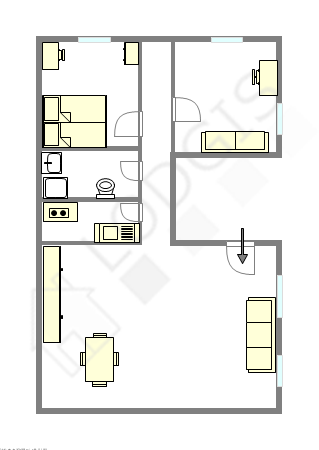 Este apartamento é composto de um atraente salão com alcatifa no piso é janelas vitros duplos. Este salão calmo mobiliado et equipado para uma agradável estância : televisaõ, sofá, mesa de jantar, mesinha, roupeiro, armário, 3 cadeira(s), banco.