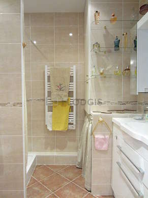 Este apartamento tem uma bonita cozinha com azuleijo no piso e todo o equipamento pela sua vida quotidiana : fogaõ, frigorífico, micro-ondas combinado, exaustur, torradeira, chaleira, máquina de café, armário, loiça.