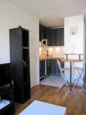 Este apartamento tem uma bonita cozinha com azuleijo no piso e todo o equipamento pela sua vida quotidiana : fogaõ, frigorífico, microondas, freezer, exaustur, torradeira, chaleira, máquina de café, armário, loiça, banco, bar.