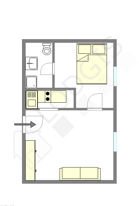 Este apartamento é composto de um agradável salão com parqué no piso é janelas é vista sobre rua. Este salão calmo mobiliado et equipado para uma agradável estância : televisaõ, 1 poltrona(s), mesinha, roupeiro, prateleira, armário1 sofá-cama.