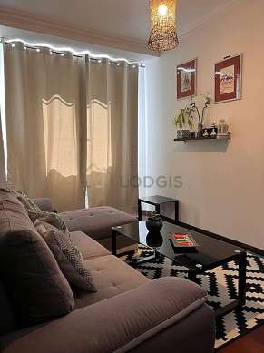 SalaõEste apartamento é composto de um salão com parqué no piso é janelas vitros duplos é vista sobre rua. Este salão mobiliado et equipado para uma agradável estância : televisaõ, sofá, mesinha, roupeiro, prateleira1 sofá-cama.