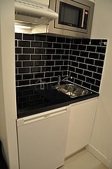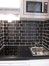 Este apartamento tem uma bonita cozinha com azuleijo no piso e todo o equipamento pela sua vida quotidiana : fogaõ, frigorífico, microondas, exaustur, armário, loiça.