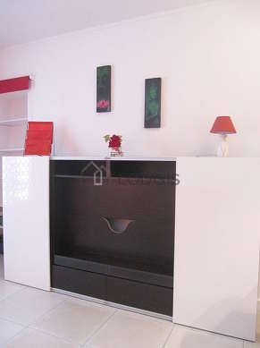 Este apartamento é composto de um agradável salão com azuleijo no piso é janelas vitros duplos é vista sobre pátio. Este salão very quiet mobiliado et equipado para uma agradável estância : roupeiro, prateleira, bufet, armário, banco, bar1 sofá-cama, 1 sofá-cama.