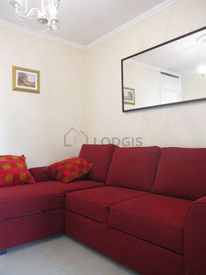 De um charmoso salão com azuleijo no piso é janelas é vista sobre jardim. Este salão very quiet mobiliado et equipado para uma agradável estância : televisaõ, lençois, colchas, mesa de jantar, secretária, roupeiro, armário, 2 cadeira(s)1 sofá-cama.