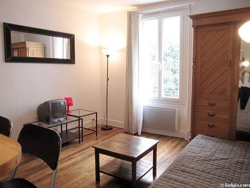 Este apartamento é composto de um salão com parqué no piso é janelas vitros duplos é vista sobre rua. Este salão mobiliado et equipado para uma agradável estância : televisaõ, lençois, colchas, mesinha, prateleira, guarda-roupa1 sofá-cama.