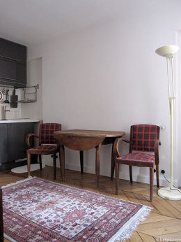 Este apartamento é composto de um charmoso salão com parqué no piso é janelas vitros duplos é vista sobre pátio. Este salão very quiet mobiliado et equipado para uma agradável estância : sofá, mesa de jantar, prateleira, 2 cadeira(s).