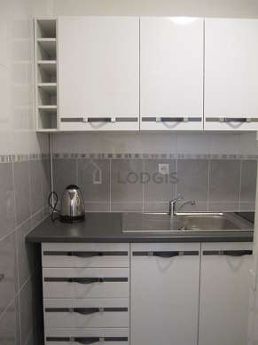 Este apartamento tem uma bonita cozinha com azuleijo no piso e todo o equipamento pela sua vida quotidiana : fogaõ, frigorífico, congelador, forno, microondas, exaustur, chaleira, máquina de café, loiça.