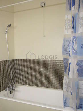Este apartamento é equipado de uma casa de banho. Esta sala de água dispõe do necessário pelo seu bem estar na sua vida quotidiana : toalhas de banho, armário, banheira. Os WC são separados da casa de banho e situados em uma peça independente.